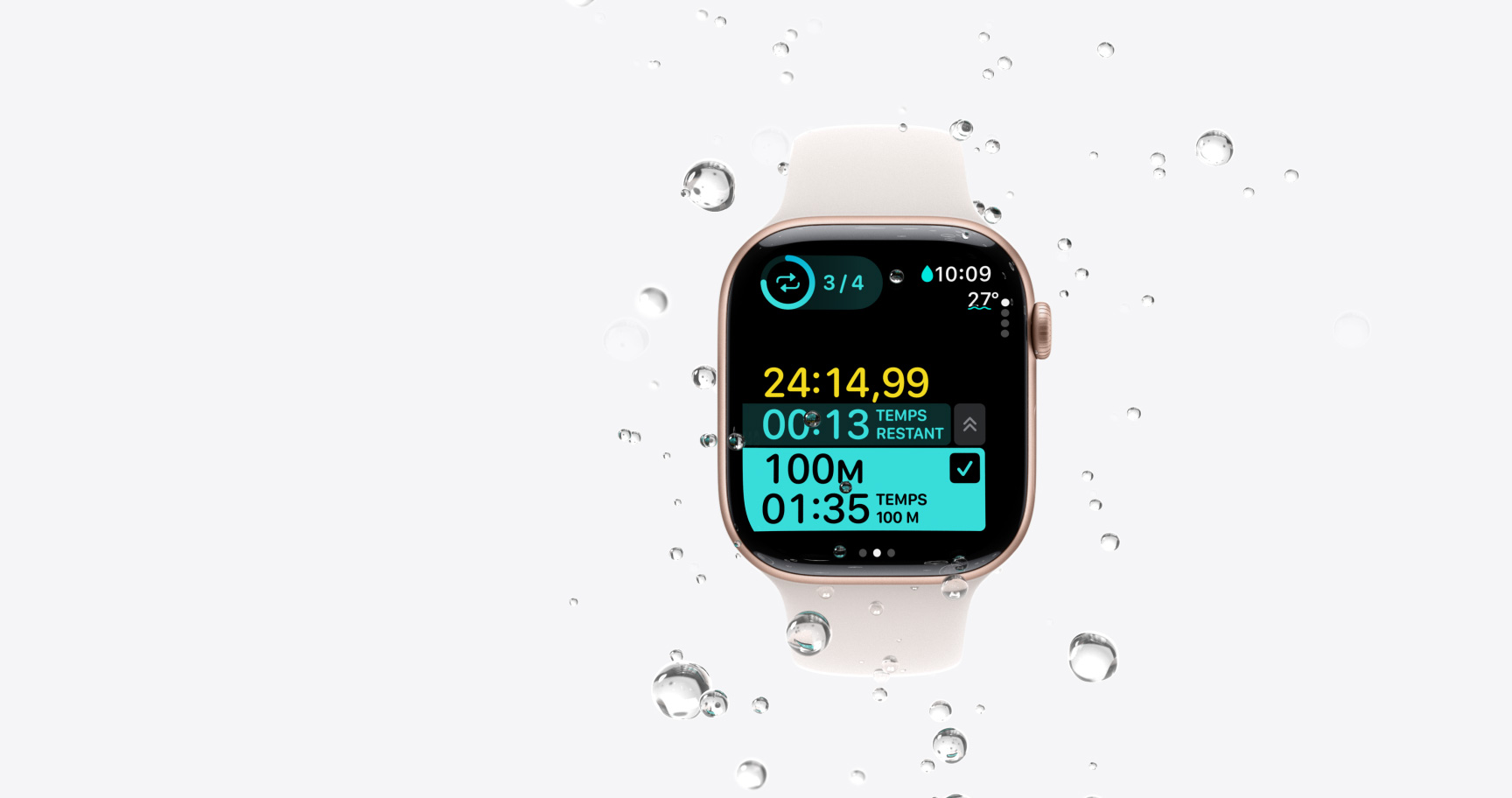 L’Apple Watch Series 11 est certifiée WR508 et IP6X9, ce qui la rend idéale pour la piscine ou la mer jusqu’à 6 mètres, et totalement hermétique à la poussière.