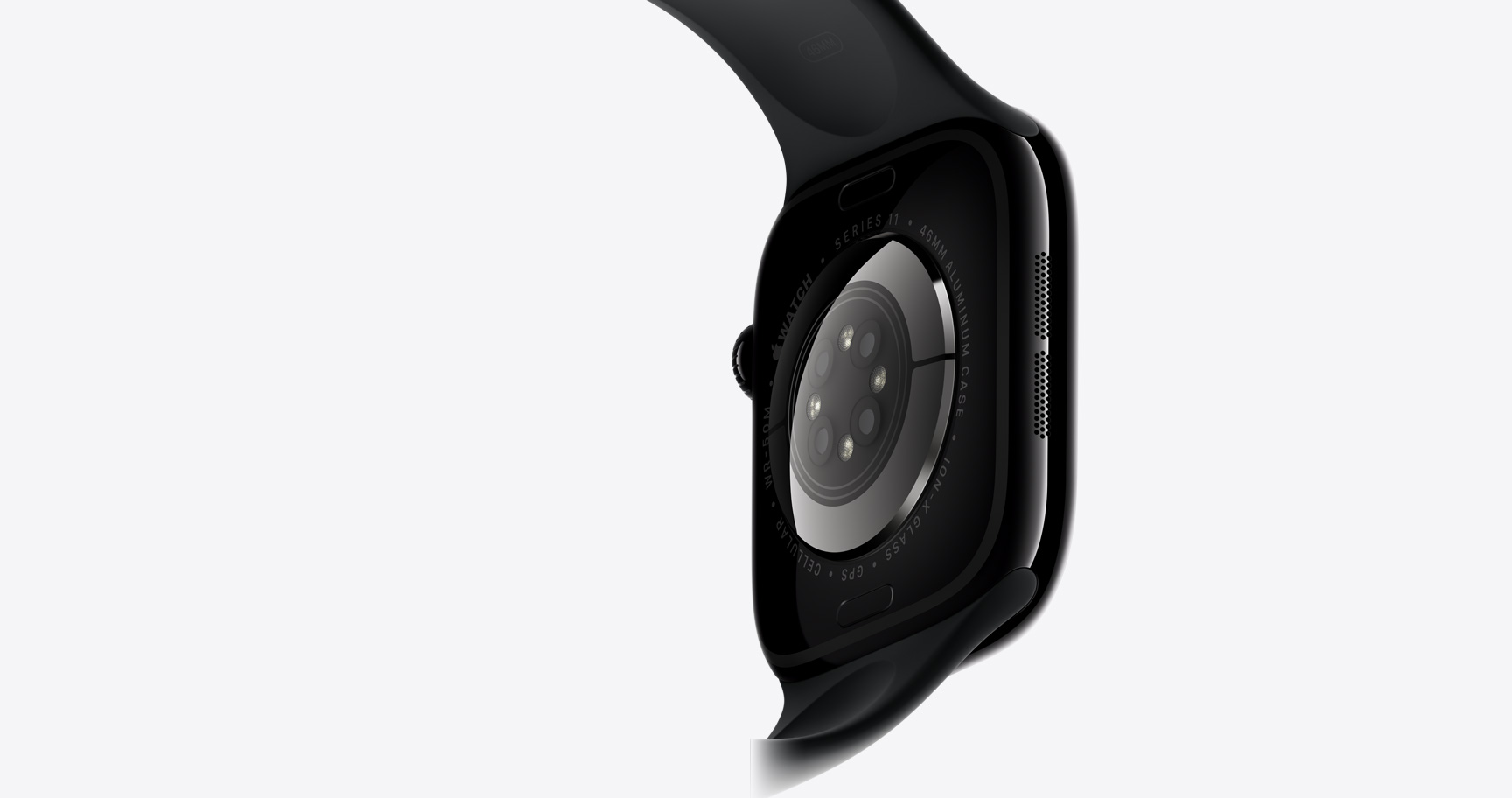 Faites votre choix parmi sept finitions sublimes, notamment le nouvel aluminium gris sidéral. Apple Watch Series 11 montrée en Aluminium noir de jais.