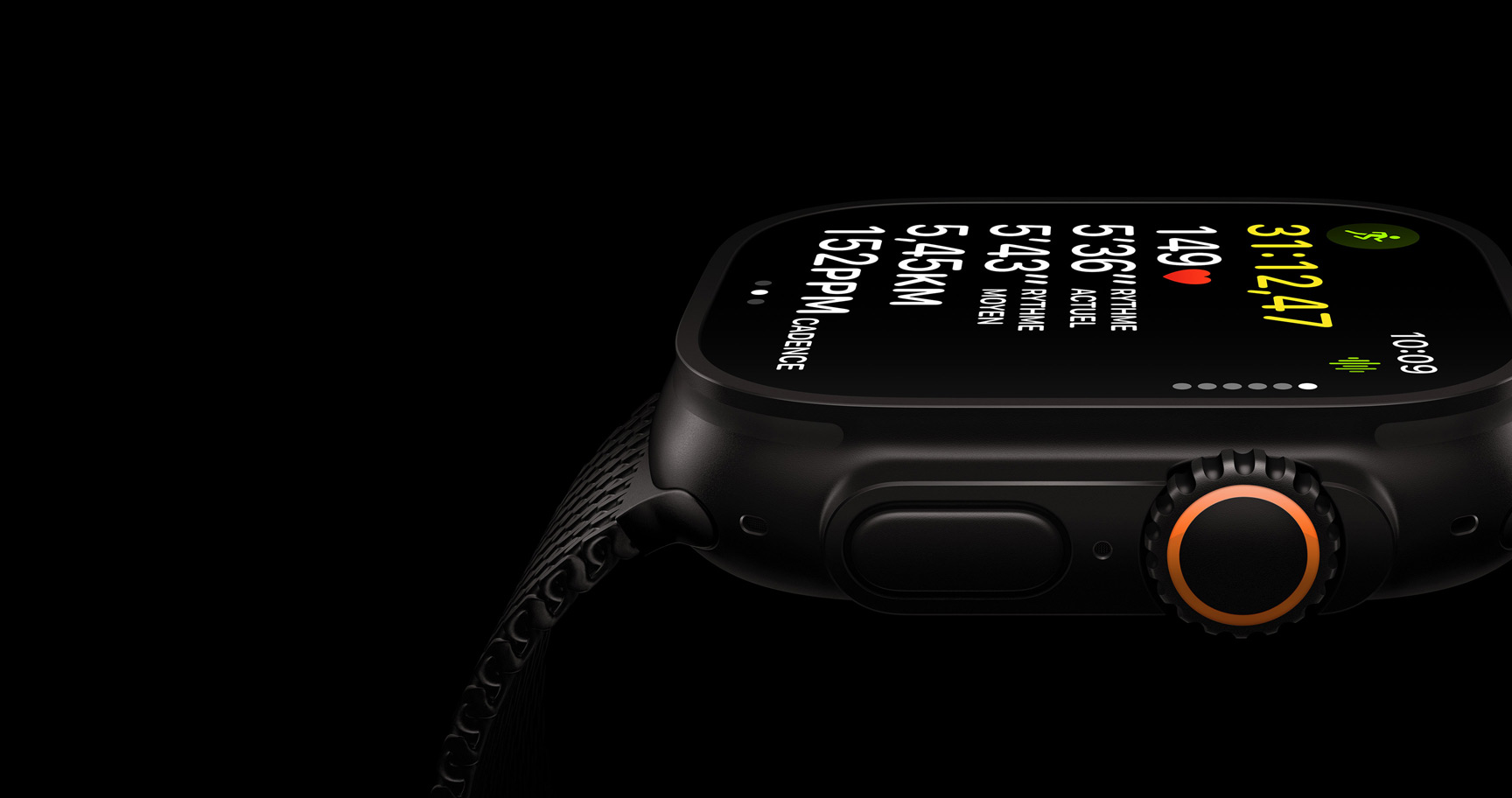 L’Apple Watch Ultra 3 intègre désormais des communications par satellite intégrées(1), une autonomie de plusieurs jours(2) et l’écran le plus grand et le plus lumineux jamais vu sur Apple Watch(3). Elle vous offre également des données avancées, des Exercices personnalisés, un GPS double fréquence et des infos précieuses sur votre santé, comme les notifications d’hypertension(4) et le Score de sommeil. Ce n’est pas pour rien qu’elle s’appelle Ultra.