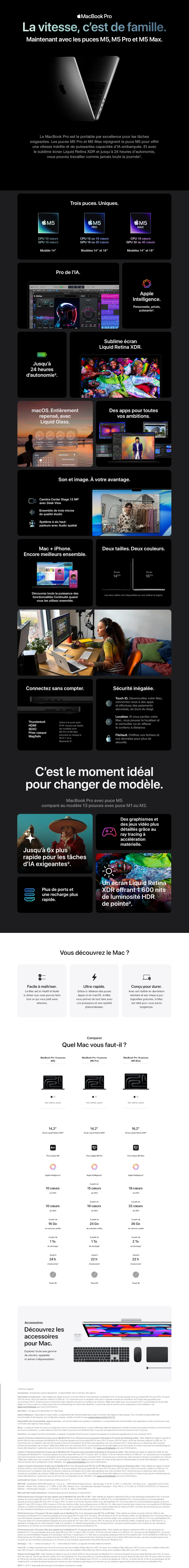 Le MacBook Pro 14 pouces avec M5 offre une vitesse inédite et une puissante IA embarquée pour vos tâches personnelles, professionnelles et créatives.